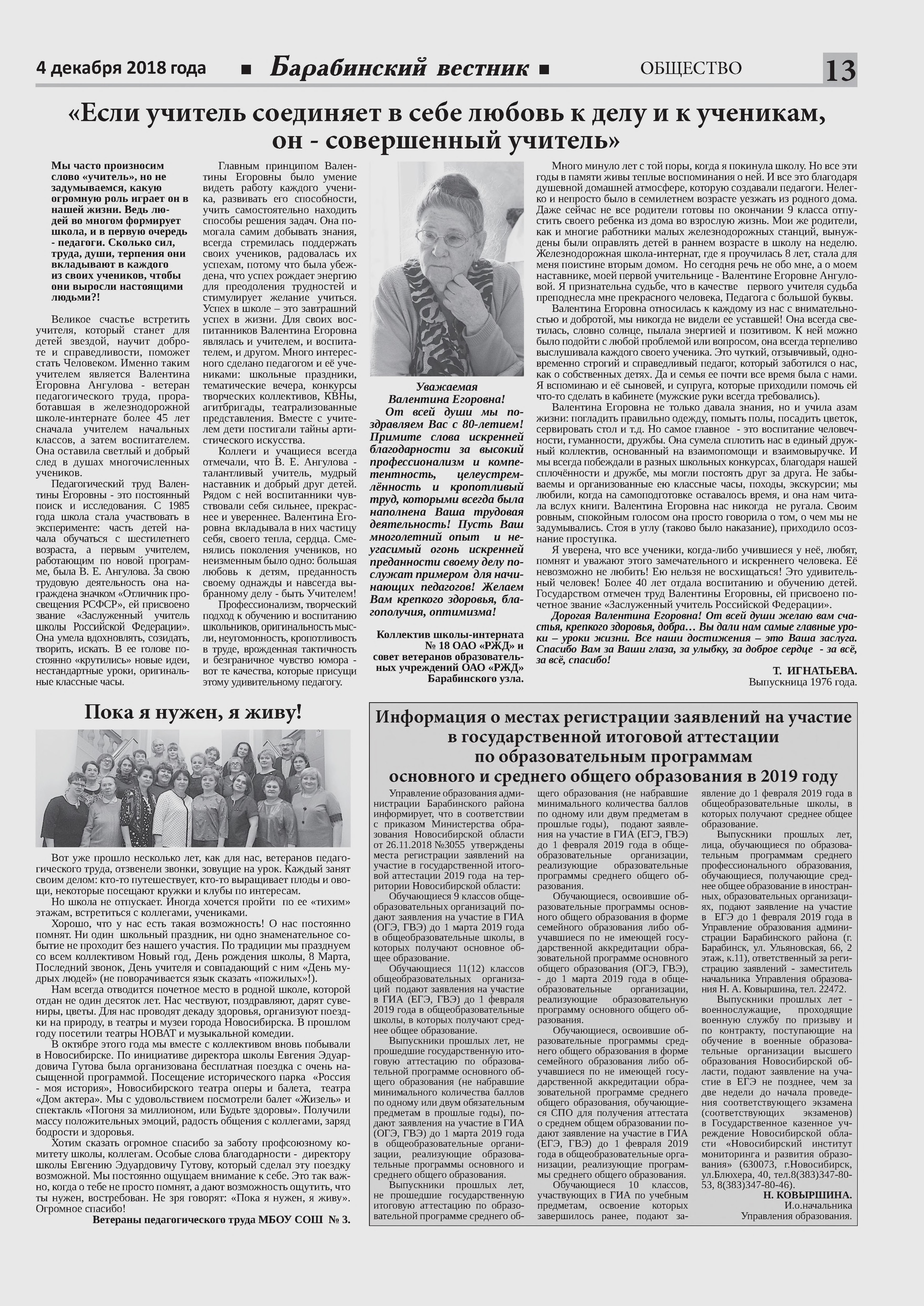 Если учитель соединяет... // Барабинский вестник. - 2018. - №49. - с.13