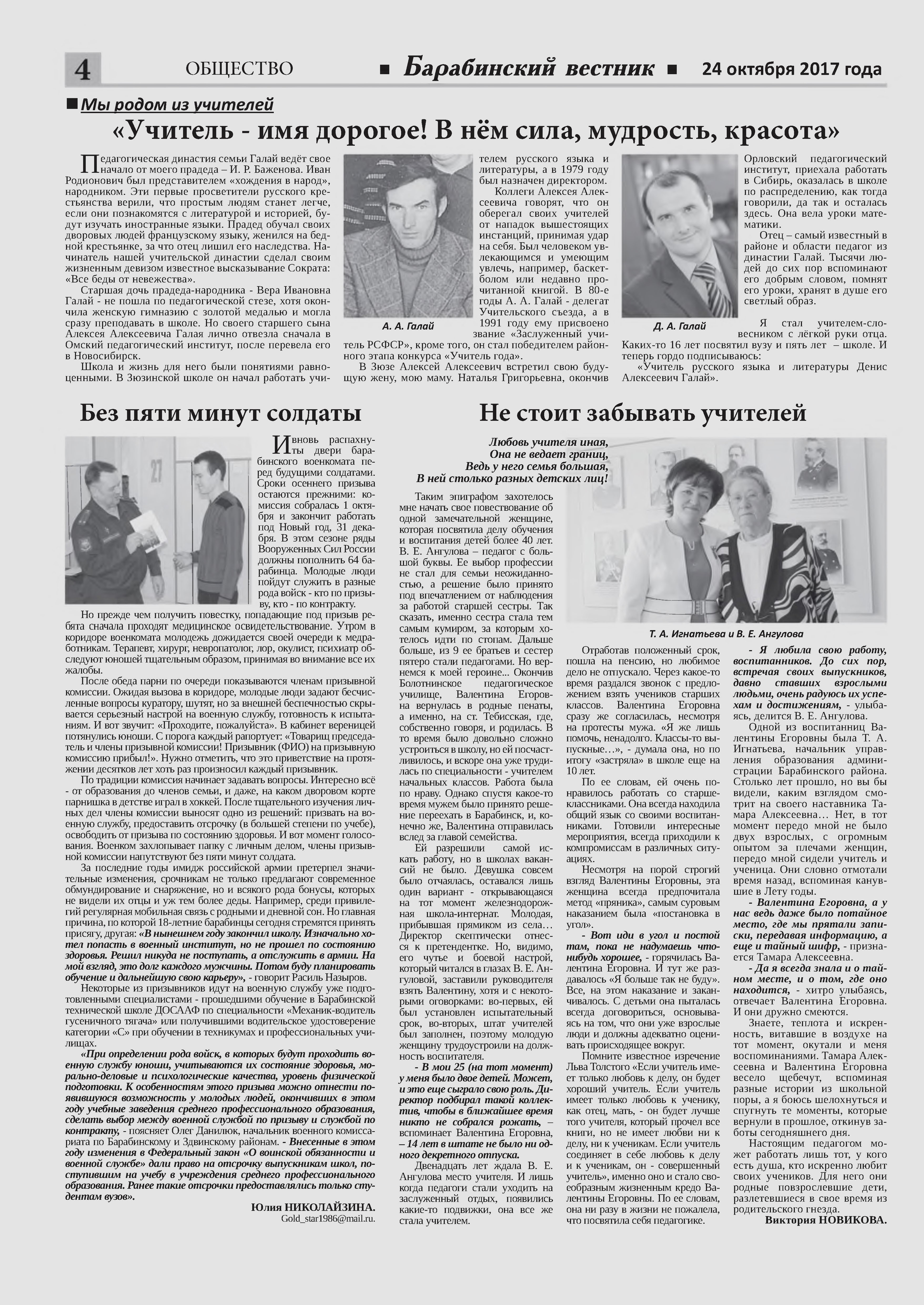 Новикова, В. Не стоит забывать учителей // Барабинский вестник. - 2017. - №43. - с.4