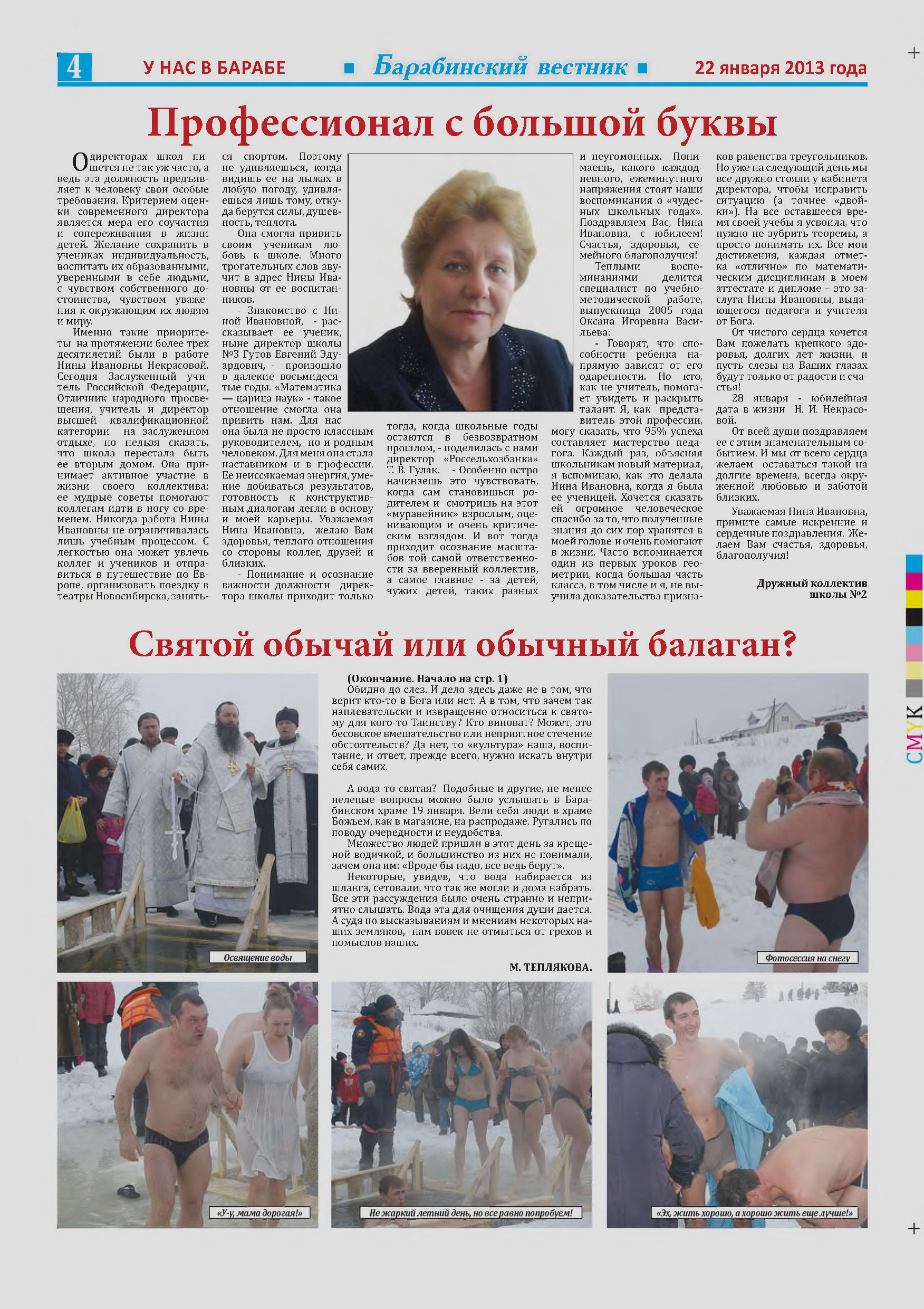 Профессионал с большой буквы // Барабинский вестник. - 2013. - №4. - с.4