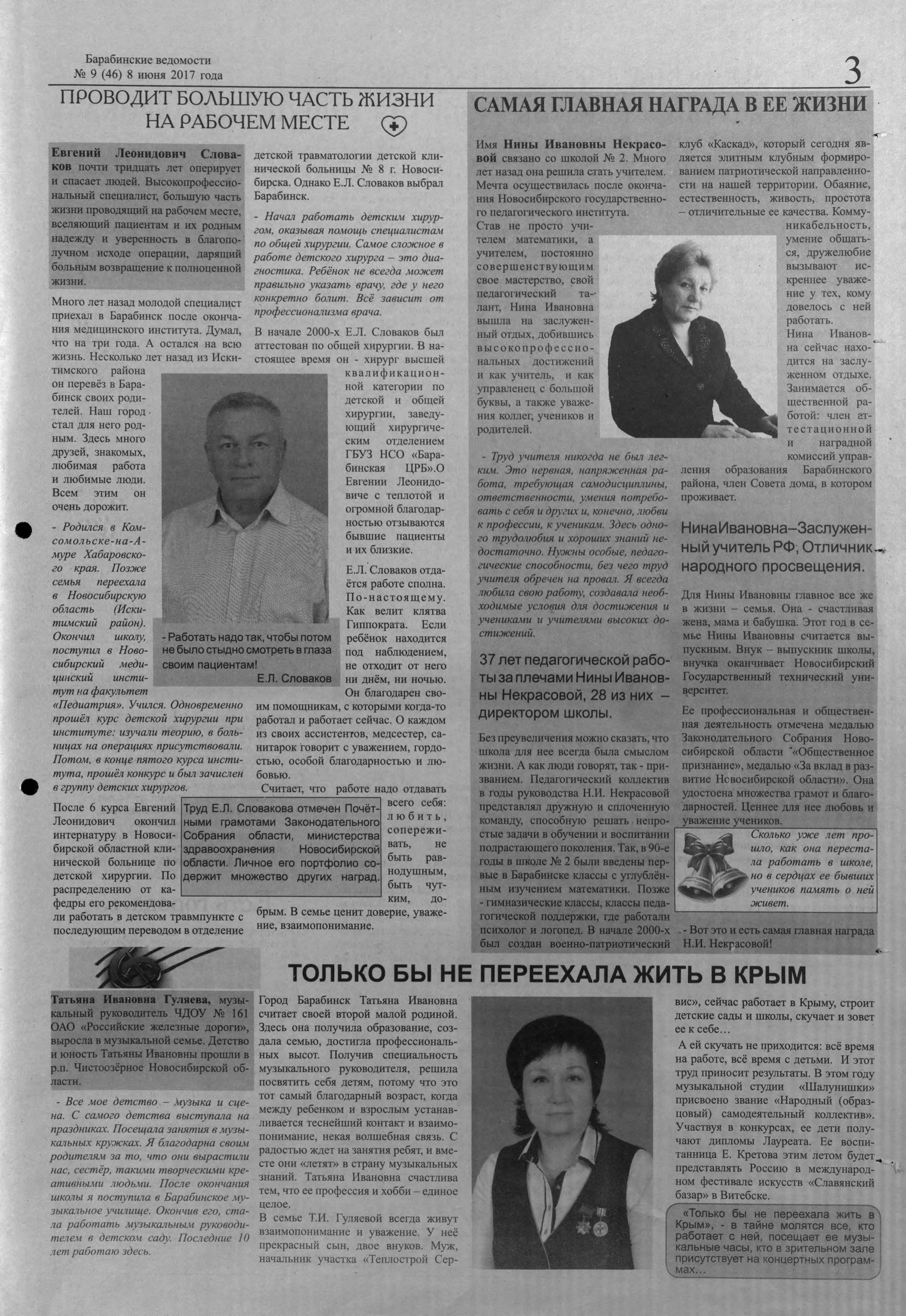 Сердце, отданное школе // Барабинский вестник. - 2018. - №5. - с.11