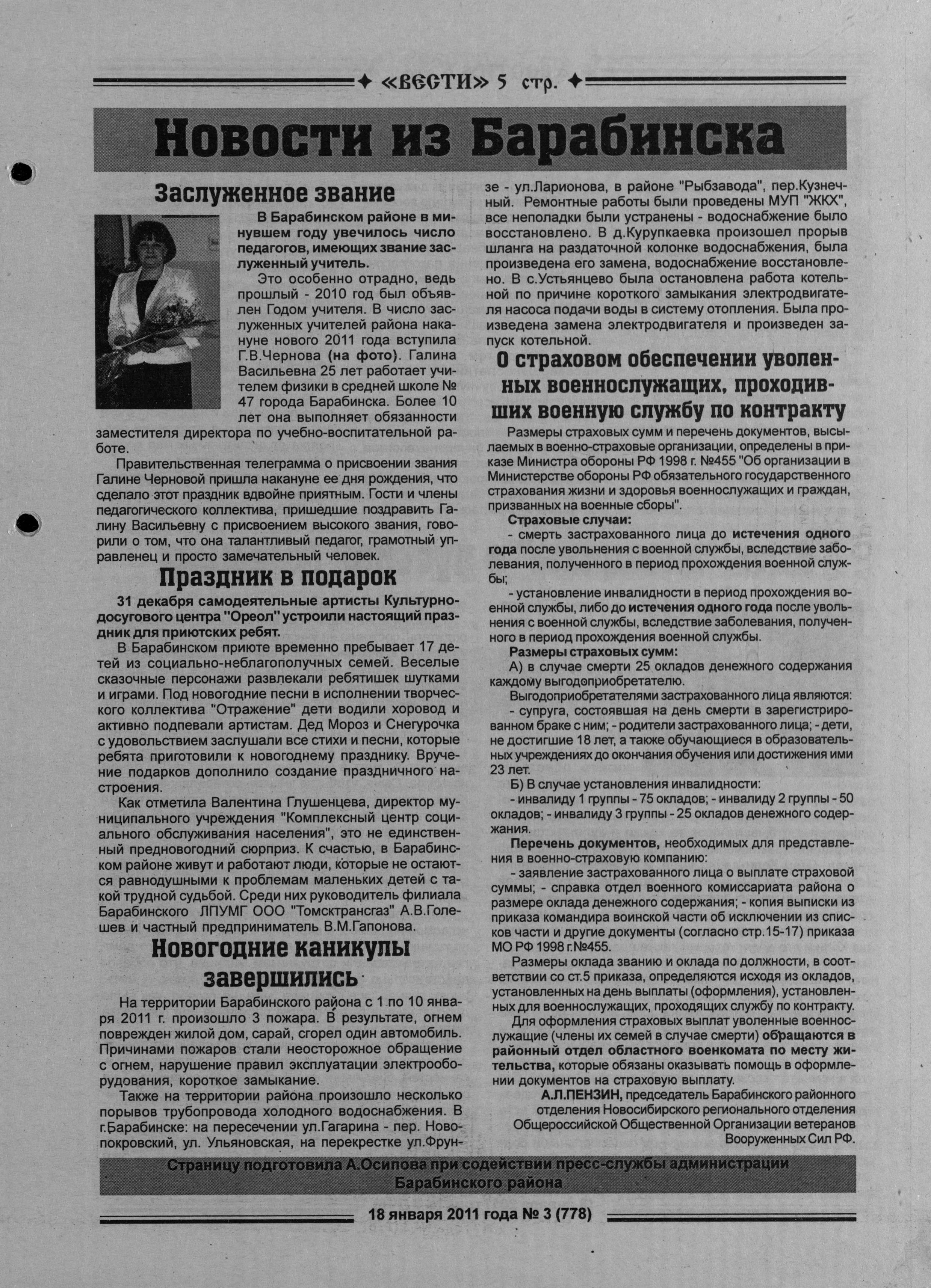 Заслуженное звание // Вести. - 2011. - №3. - с.5